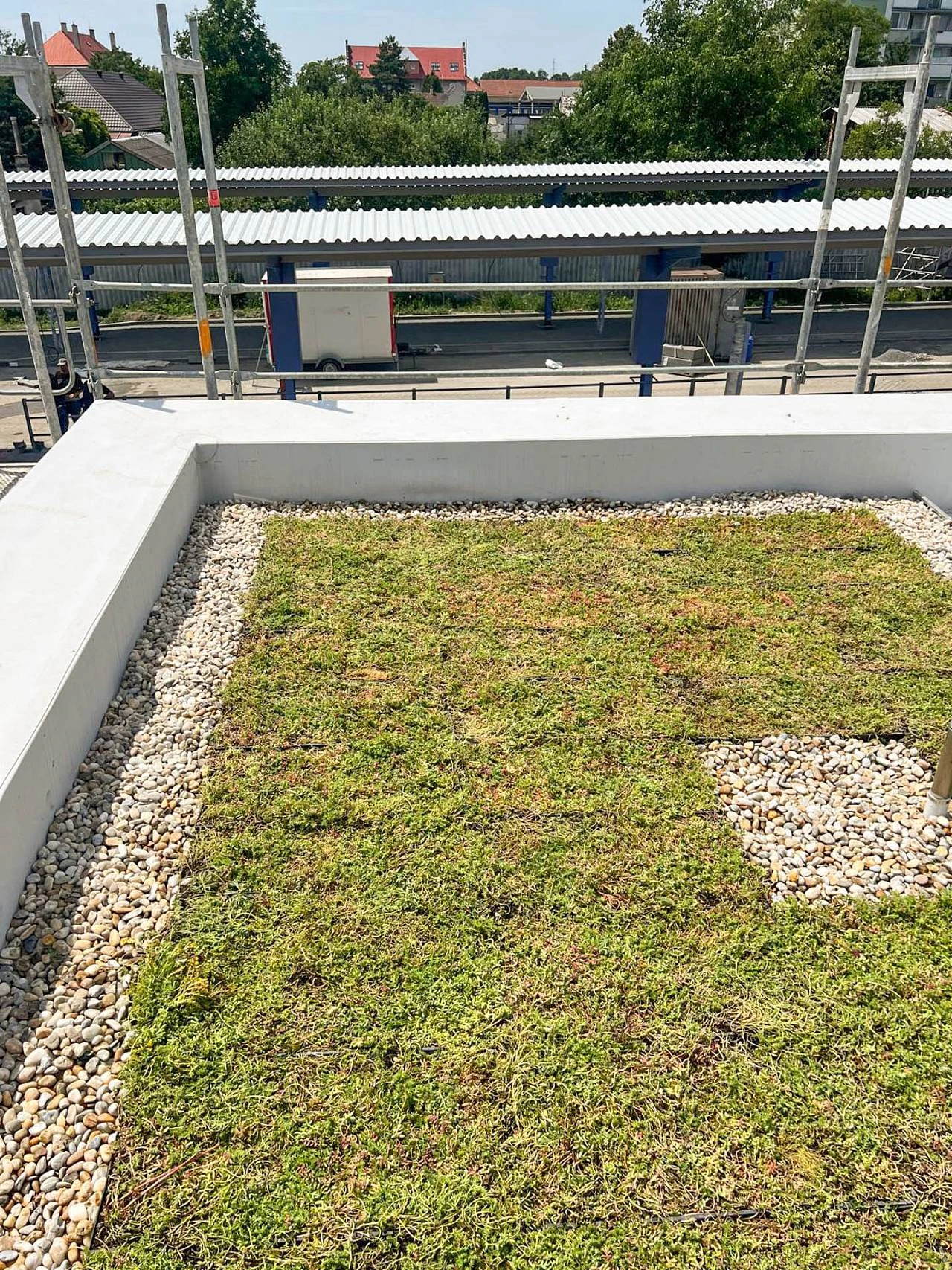 Předpěstovaný více druhový mix rozchodníkových rostlin (u perimetrické kazety doplněno o suchomilné traviny) vhodných pro naše klimatické podmínky v mobilních kazetách o rozměrech 600 x 300 x 90 mm nebo 588 x 388x 80 mm.